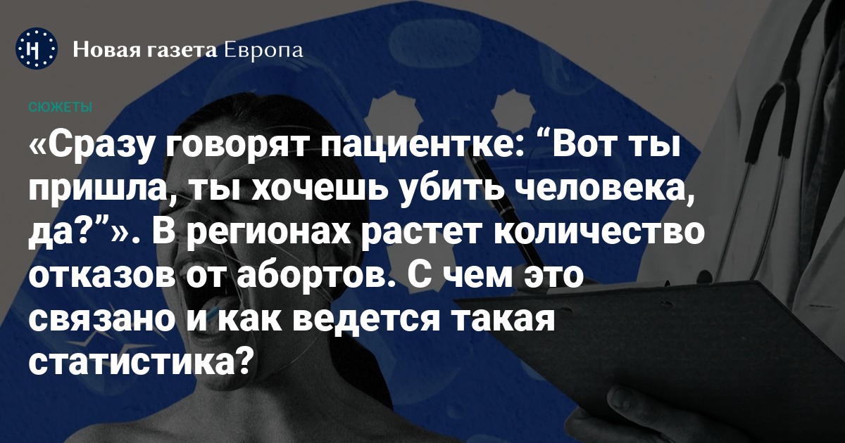 Иногда врачи могут прямо давить на женщину. «В женских консультациях порой работают такие дамы, которые сразу говорят пациентке: “Вот ты пришла, ты хочешь убить человека, да?” — поделилась в беседе с «Ветром» гинеколог Ольга Бабуева из Ангарска. — Женщина приняла решение, а ее начинают в убийстве обвинять».