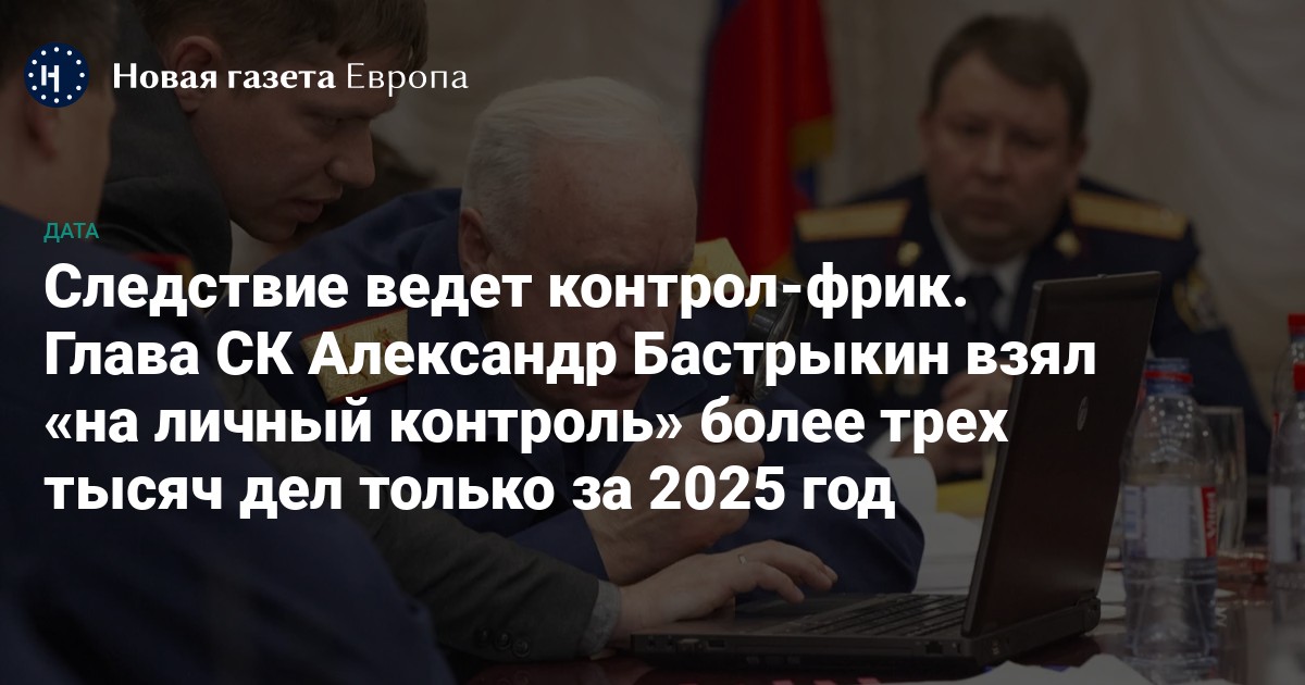 По расчетам «Новой-Европа» на основе телеграм-канала «Информационный центр СК России», всего за 2025 год Александр Бастрыкин взял на личный контроль минимум 3220 дел, в среднем по 13 дел в сутки.