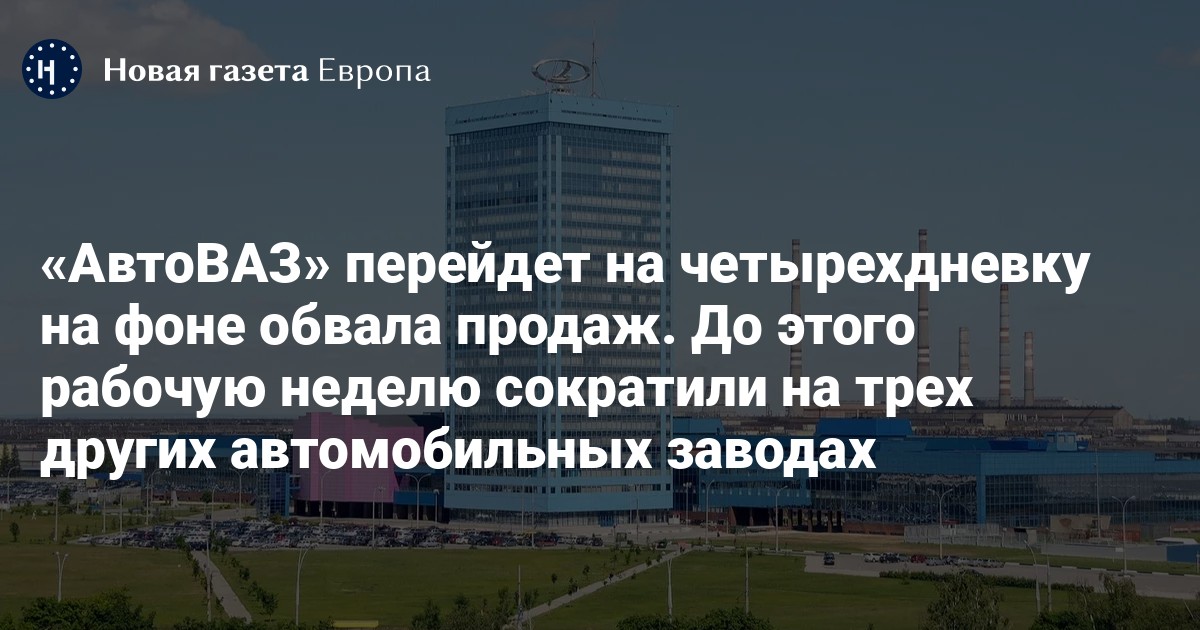 «В целях сохранения рабочих мест и трудового коллектива, а также недопущения массового сокращения работников предприятия планируется введение режима четырехдневной неполной рабочей недели с 29 сентября», — говорится в презентации вице-президента по персоналу и социальной политике «АвтоВАЗа» Дмитрия Михаленко.