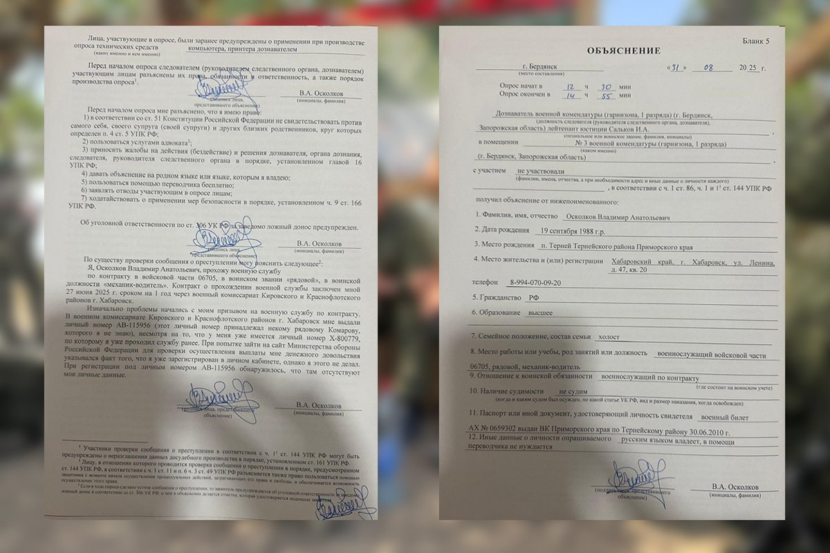 37-летний Осколков — житель Хабаровска. Он подписал контракт с Минобороны в июне, попав в СИЗО, где находился по обвинению в мошенничестве. Подробностей о его деле сестра не знает.