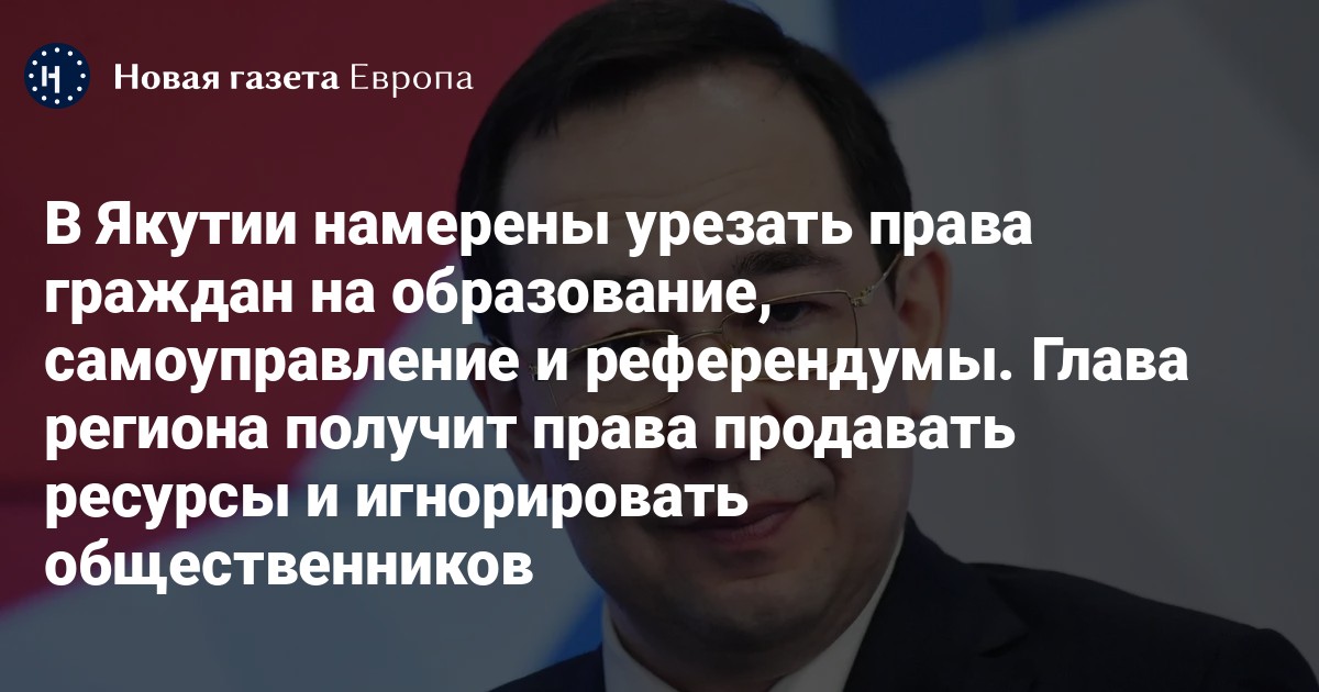 «Это откровенно антинародный проект документа, направленный на централизацию и усиление персональной власти главы Якутии. Ничего общего с интересами населения он не имеет», — отметил Обедин.