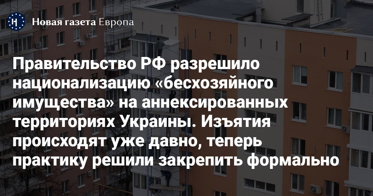 По словам собеседников издания, соответствующий законопроект, разработанный Минстроем, правительственная комиссия одобрила 20 октября. Российские власти уже практикуют изъятие «брошенного» жилья в оккупированных регионах Украины, но теперь такую практику хотят закрепить в федеральном законодательстве, добавили «Ведомости».