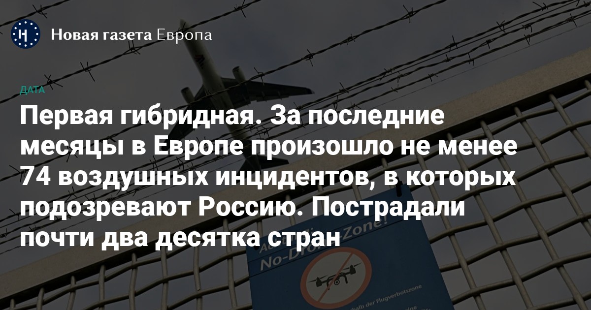 Согласно подсчетам «Новой газеты Европа», с августа по середину октября 2025 года в Европе произошло не менее 74 инцидентов с участием воздушных судов и дронов, предположительно связанных с Россией. В последние месяцы число случаев устойчиво растет: от 1–3 инцидентов в неделю в августе до пика в конце сентября, когда количество достигло 17 за неделю.