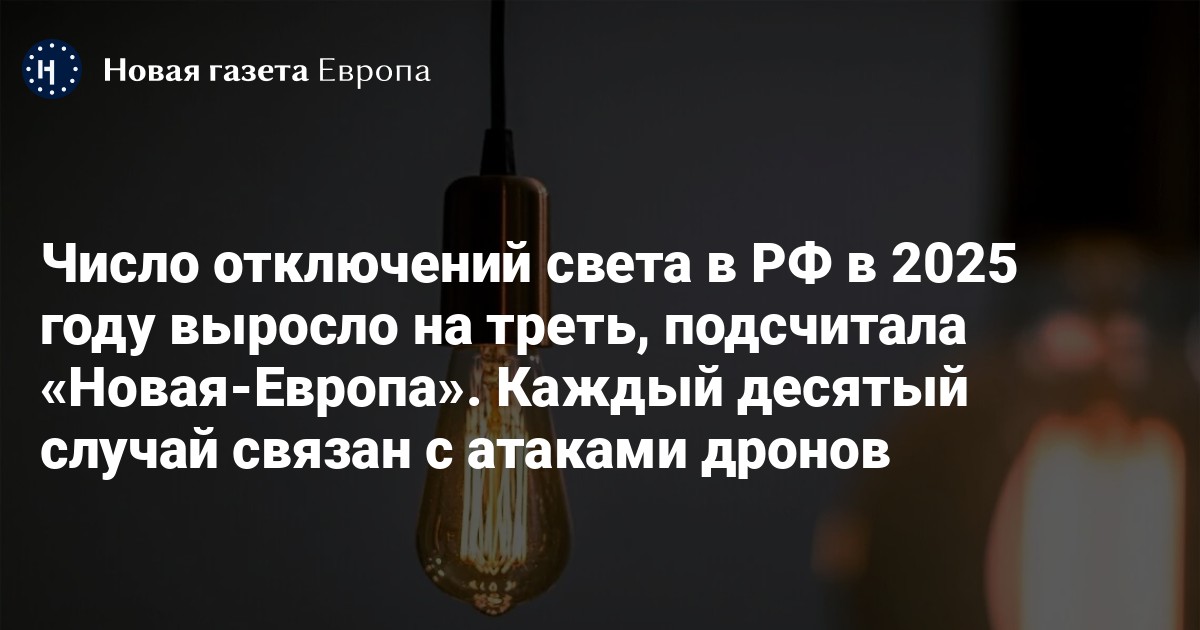В 2025 году в России в среднем за месяц произошло на 34% больше случаев отключений электричества и аварий на электросетях, чем в 2024-м, подсчитала «Новая газета Европа».