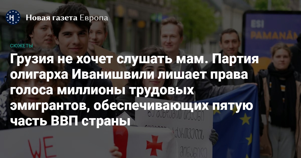 Грузины, проживающие на Западе, — именно они присылают на родину больше всего денег и реже всего голосуют за «Грузинскую мечту» на выборах. Похоже, что в партии, основанной миллиардером Бидзиной Иванишвили, сильно обиделись на собственную диаспору, и на 13-й год правления собираются лишить соотечественников права голосовать за пределами юрисдикции «Мечты». Считается, что за границей в настоящее время проживает от миллиона до полутора миллионов граждан Грузии, у которых единственное или двойное гражданство. Что думают о новых ограничениях авторы законопроекта в Грузии и те, кого они касаются за границей, разбиралась Ия Баратели.