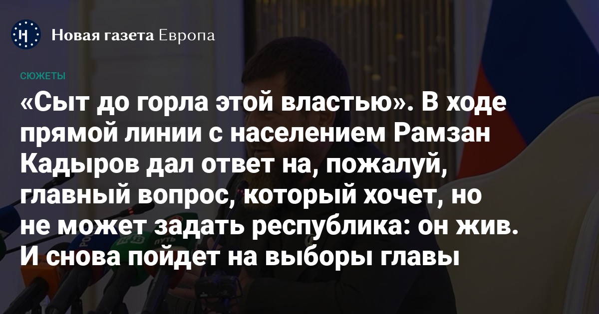 Но, пожалуй, единственной темой этой прямой линии, ради которой она, собственно, и была проведена, даже несмотря на неважное состояние здоровья чеченского лидера, стала тема грядущих в 2026 году выборов главы региона. Вопрос, пойдет ли Кадыров на пятый срок, был главным, и ответ на него чеченский лидер по понятным причинам не мог делегировать никому из своих подчиненных.