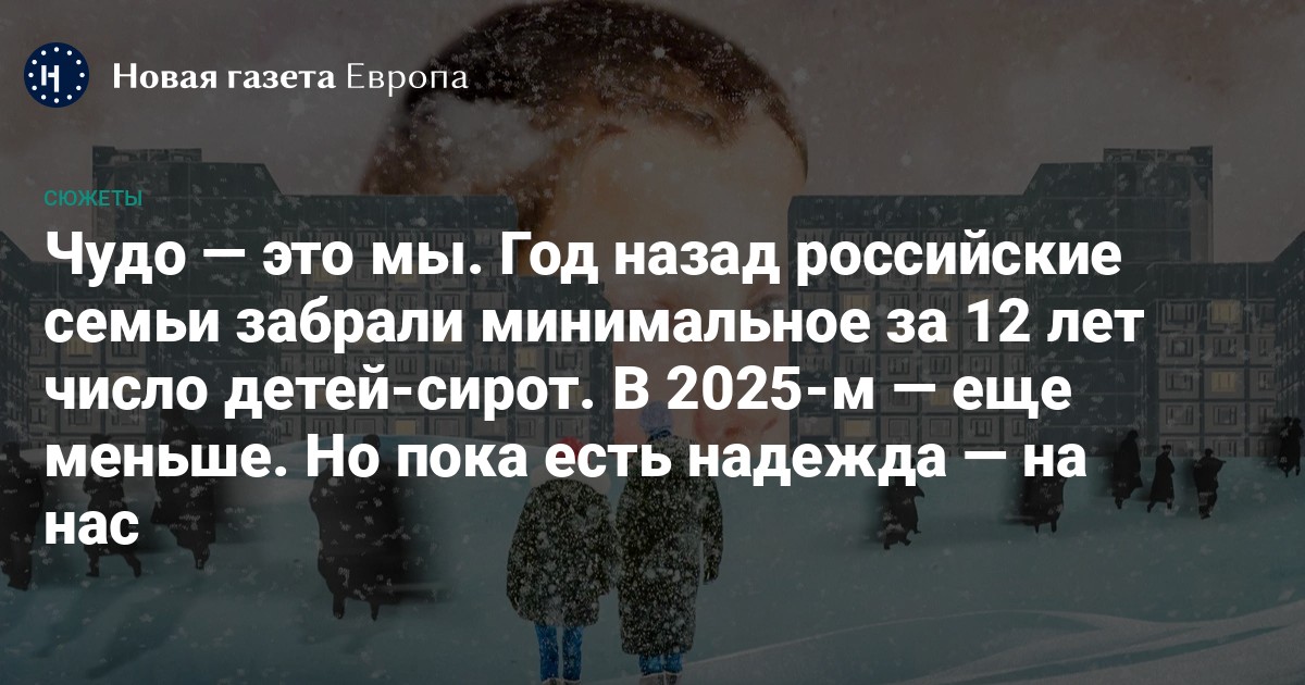 И вот я сижу в конце декабря 2025 года, листаю ленту, и мне на почту приходит письмо от некоммерческого российского фонда, занимающегося вопросами российского сиротства, «» очередной ежемесячный отчет, на что ушли в том числе мои 500 рублей пожертвований. Машинально открываю, быстро пробегаю глазами, закрываю и снова погружаюсь в информационную повестку последних 4 лет… И вдруг осознаю: нет в этой повестке медиа того, что всегда в «мирное» время было, — материалов про детские дома, хосписы, ночлежки для бездомных, сборы на онкобольных детей и детей с орфанными заболеваниями. И оно понятно: война.