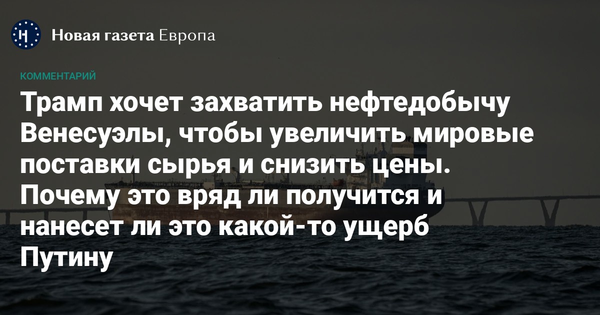 В Кремле очень бы обрадовались дорогой нефти — слишком много денег нужно на агрессию против Украины. Недаром Минэкономразвития России рассчитывает в 2026 году в среднем на 70–72 доллара за Brent. Но, как пишет Родионов, даже если в Венесуэле случится ренессанс добычи, это «станет еще одним фактором стабилизации цен на нефть на сравнительно низких уровнях. Цен по $100 — в реальном выражении — рынок больше не увидит».