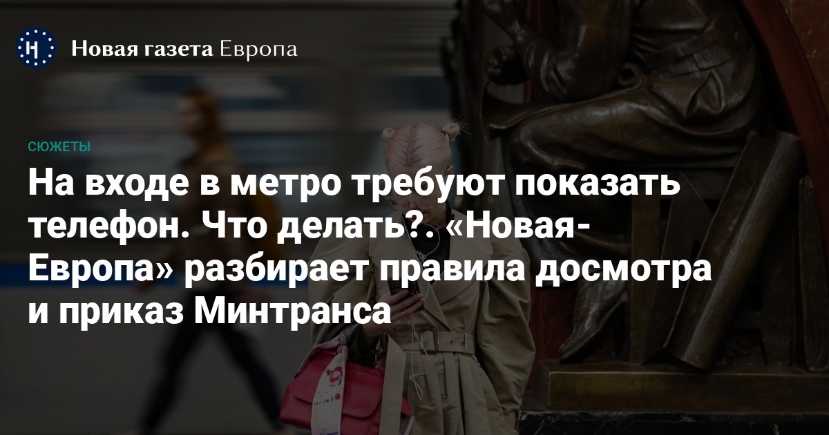 2 февраля московский метрополитен заявил, что на входе могут выборочно досматривать телефоны пассажиров, объяснив новые меры выполнением приказа Минтранса. Аналогичные правила уже действуют в Петербурге, где вице-губернатор Кирилл Поляков говорит, что «время непростое», и просит жителей «отнестись к этому с пониманием».