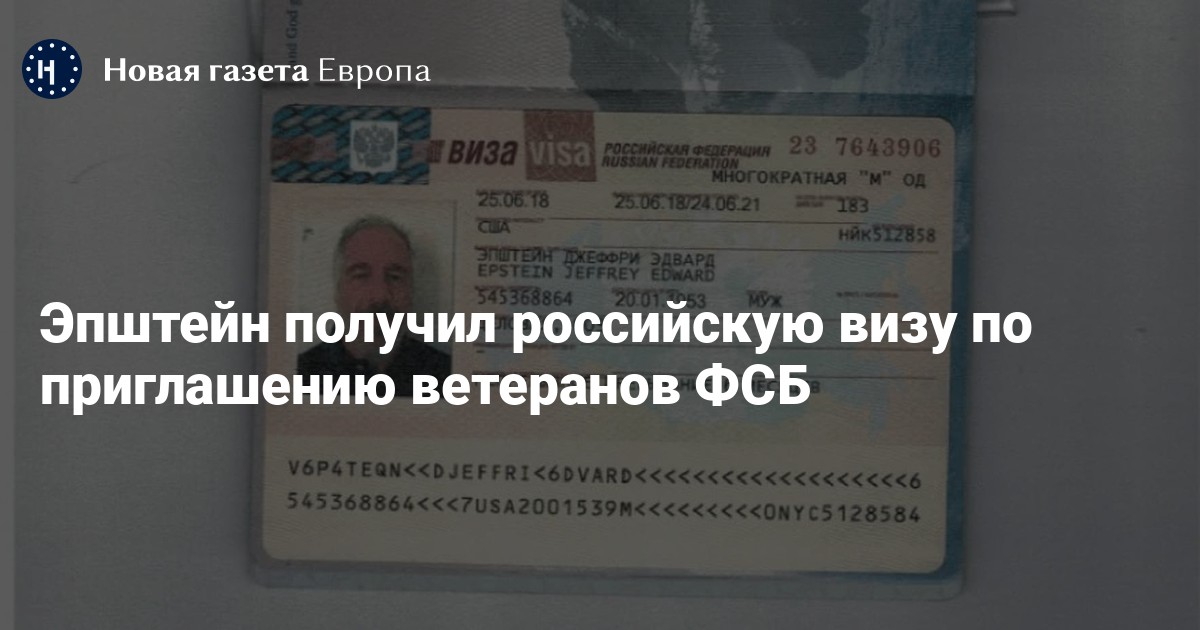 Российская деловая виза Джеффри Эпштейна. Фото: Department of Justice