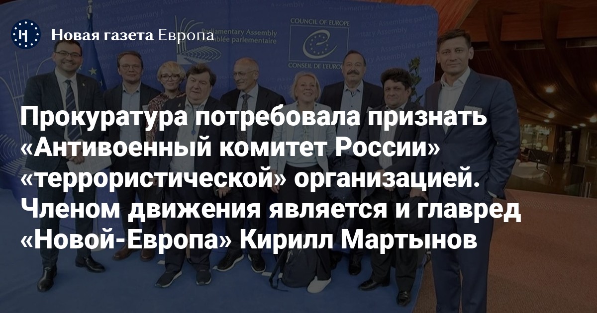 В октябре прошлого года ФСБ возбудила уголовное дело по статьям о причастности к «террористическому сообществу» и «насильственном захвате власти» в отношении 23 членов «Антивоенного комитета России», в числе которых и главред «Новой-Европа» Кирилл Мартынов.
