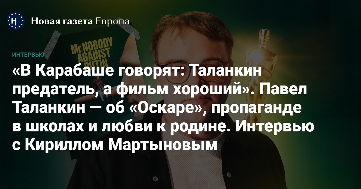 Минувшей ночью картина выиграла премию «Оскар» в категории «Лучший документальный фильм». Главный редактор «Новой газеты Европа» поговорил с Таланкиным накануне церемонии награждения.