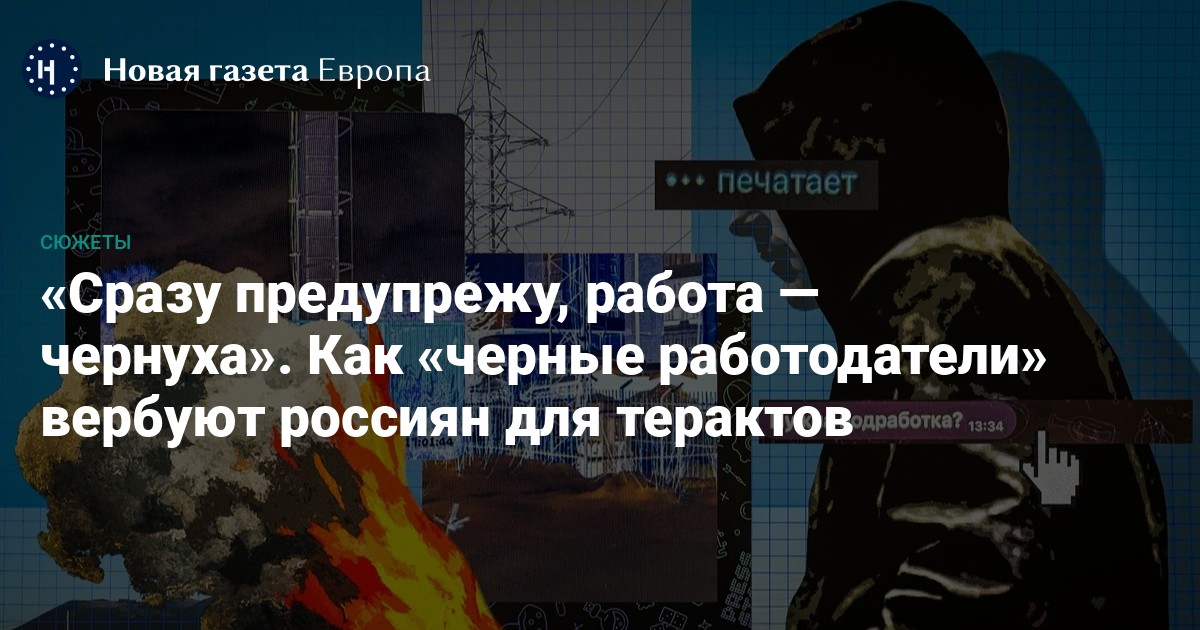 «За поджог мы заплатим 10 тысяч», «Нужно оформить страховой случай», «Порча имущества оплата 40К», «Повредить поджечь такое», — подобные сообщения стали массово приходить в аккаунты россиян, ищущих работу. Для соискателей это выглядит как мелкое хулиганство в сговоре со страховой компанией. В глазах российских следственных органов это теракт по заказу иностранной спецслужбы.