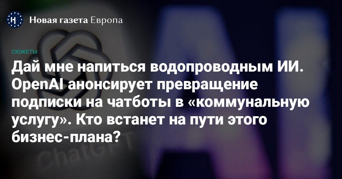 Начнем с корпоративной колокольни. Мечты гигантов Кремниевой долины Сэм Альтман транслировал безупречно: искусственный интеллект ускоренными темпами превращается в коммунальную услугу. Такую же скучную и привычную, как водопровод или электричество в квартире. Пользователи покупают «мозги» по счетчику в виде токенов, которые тратятся на выполнение любых задач и потребностей.
