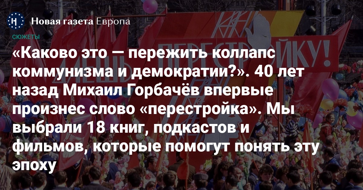8 апреля 1986 года, выступая перед сотрудниками Волжского автозавода в Тольятти, генеральный секретарь ЦК КПСС Михаил Горбачёв впервые употребил слово «перестройка». Так началась шестилетняя эпоха, которая привела к тектоническим сдвигам в миропонимании советских граждан, а в конечном итоге — и к распаду Советского Союза. Споры о том, чем была перестройка, — долгожданным освобождением или цивилизационной катастрофой — продолжаются до сих пор; в каком-то смысле война в Украине и другие события последних лет даже дали им новый заряд. Редактор «Новой газеты Европа» Александр Горбачёв собрал подборку из главных нонфикшн книг, фильмов и подкастов, которые могут помочь, если вам хочется составить свое представление о перестройке.