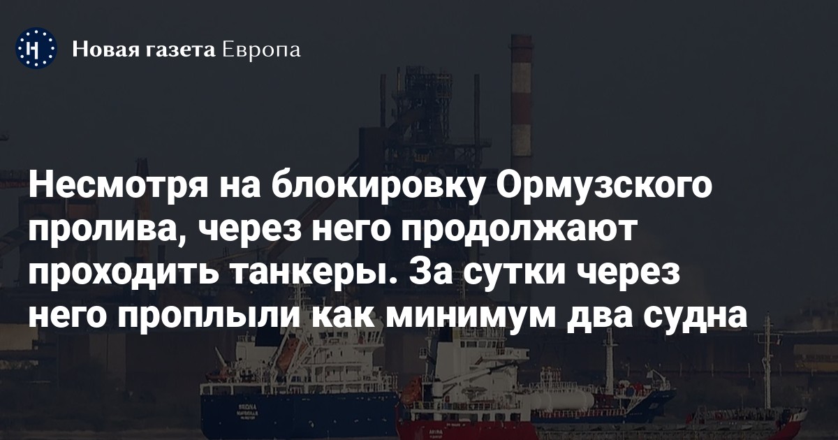 За последние сутки через Ормузский пролив проплыло как минимум два танкера — несмотря на то, что США заблокировали его. Это следует из данных веб-карты Strait of Hormuz и трекера судов Vessel Finder, которые изучила «Новая-Европа».