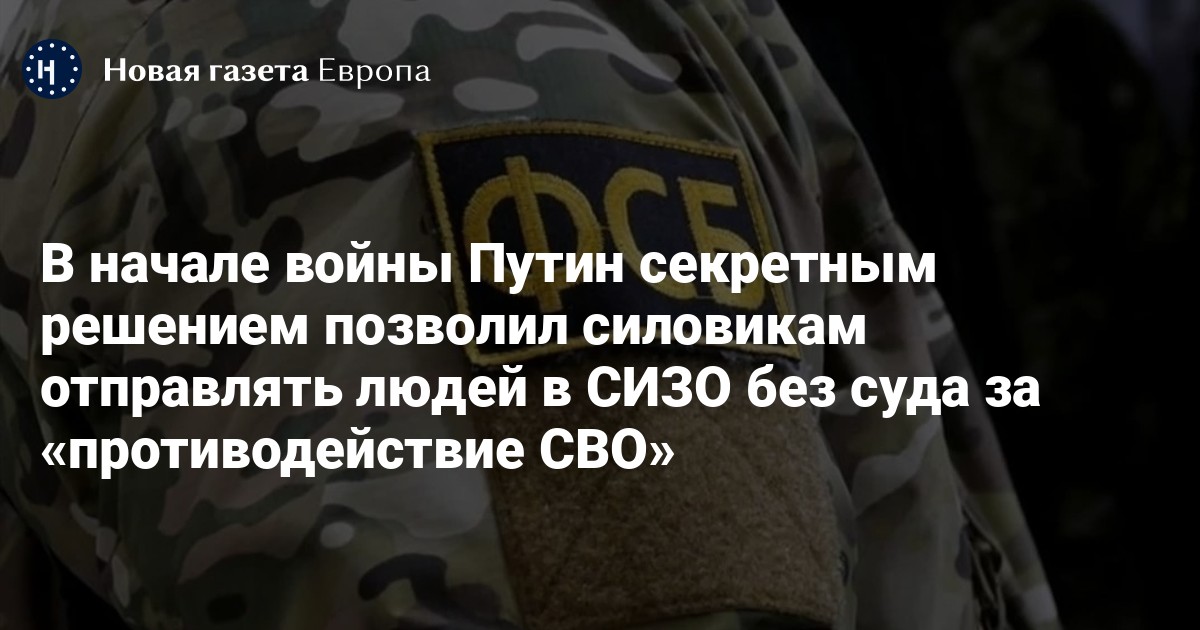 8 марта 2022 года Путин подписал «решение», которое позволяет силовикам помещать людей в СИЗО без суда. Об этом сообщает «Первый отдел» со ссылкой на документы СК.