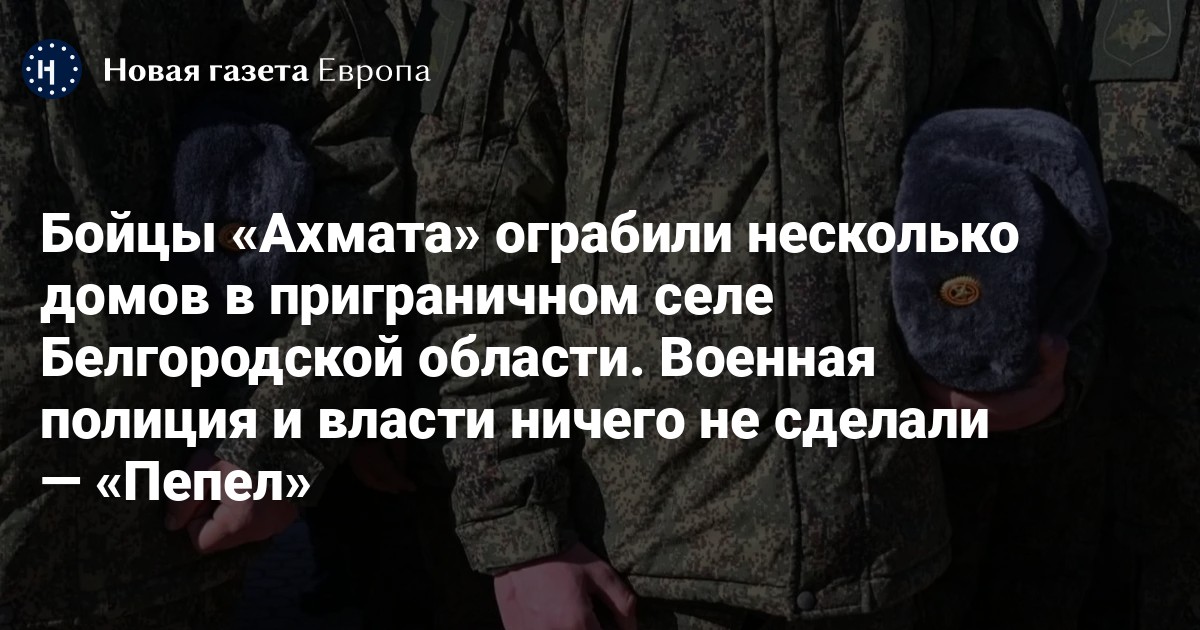 9 апреля в село Новая Таволжанка Шебекинского района приехали несколько машин с чеченскими военнослужащими и надписями «Ахмат» вместо номеров. Военные начали взламывать дома и выносить из них ценные вещи. Местным жителям велели «заткнуться» — и стали угрожать оружием. Об этом сообщает издание «Пепел» со ссылкой на источники.